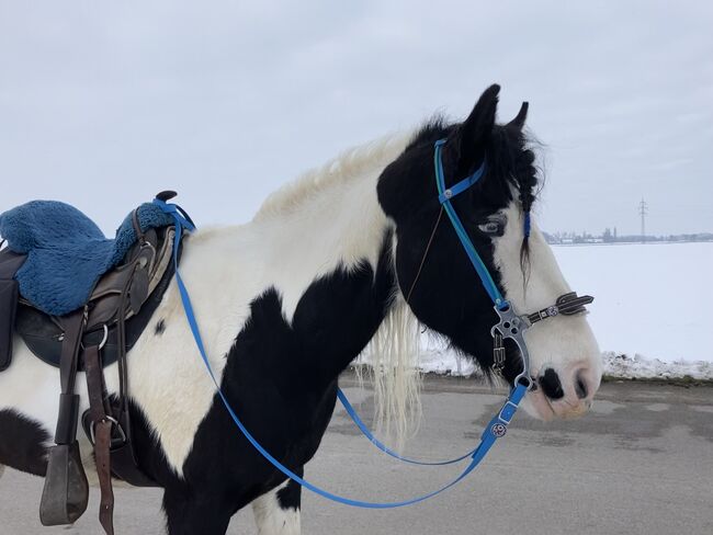 Tinker-Paint Mix mare 20 years - For family reasons I am looking for a good place for my 20 year old Tinker-Paint Mix mare where she can stay until the end. Theoretically you could still ride her, rather children because of the weight, I haven't ridden her myself for 1 year, in the summer my 13 year old niece rode her for half an hour at a walk and a short trot. She does NOT have sweet itch, but I think it's more of a metabolic problem. I don't give her any treats, bread, fruit or muesli. She gets a handful of meadow cobs every day with her mineral feed and hay 24/7. She has managed well with this in the summer for the last few years. Unfortunately, she still needs a fly hood as she doesn't like flies in her ears at all and then starts scratching. I use a hood with a fringe over her nose as her pink skin tends to get sunburnt and is therefore protected. There are no horse flies in our stable, but when these cow flies that bite (including humans) come in August, I have to put a fly blanket on her, but I'm also very annoyed by the flies myself. When her coat changes, she is given a course of zinc and herbs and is wormed twice a year. I would give her a fly mask and blanket, as well as a grooming box, rug and bridle (1x bitless, 1x with bridle). Viewing and a short test ride is possible in 2292 Loimersdorf. 06766710663 Due to fear of scammers and dealers who want to make money with my mare and sell her on, I would have a look at the stable in advance to make sure that this is really a final place.