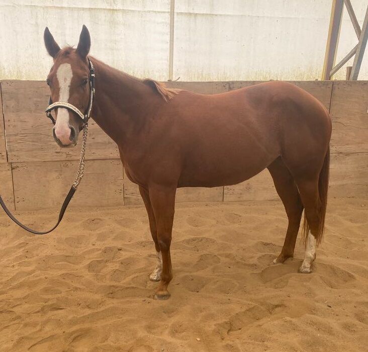 Top QH young mare by the all-round sire Unxpected - Location: 92665 Kirchendemenreuth JRS Unxpected Sorrel - this beautiful Quarter Horse mare, born on 19.05.2021, in the color sorrel with spotted hair, is sold with full AQHA papers and equine passport. With a current height of approx. 150 cm, she is still growing. Correctly built, well developed and balanced muscled, she shows excellent development. 5-panel n/n. X-rays are available. Thanks to her first-class all-round pedigree, she promises to become a top all-round prospect. Fiona was ridden professionally by Anna Gürlich for 3 months and is already very advanced for her age. She is great under saddle, willing to learn, attentive and talented. She can move really well. She is also very well-behaved in the field. The mare has now been shown for the first time at competitions and showed herself from her best side. Feona is simply a very sweet young horse, curious, fearless and cuddly. Anyone looking for a talented young horse for show and leisure should take a look at her. Is being sold by the breeder due to a reduction in stock. Currently being ridden by a youngster.