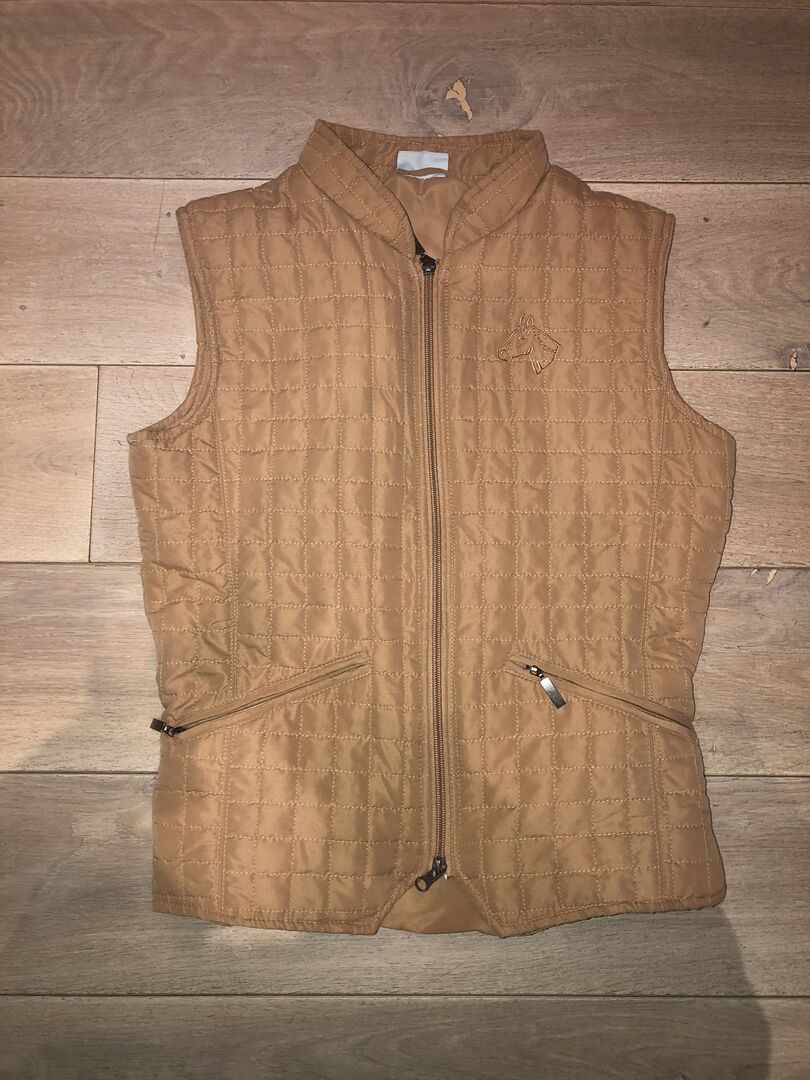 Two sleeveless quilted riding jackets, size 164 - Beige and dark blue sleeveless quilted riding jacket; size 164
