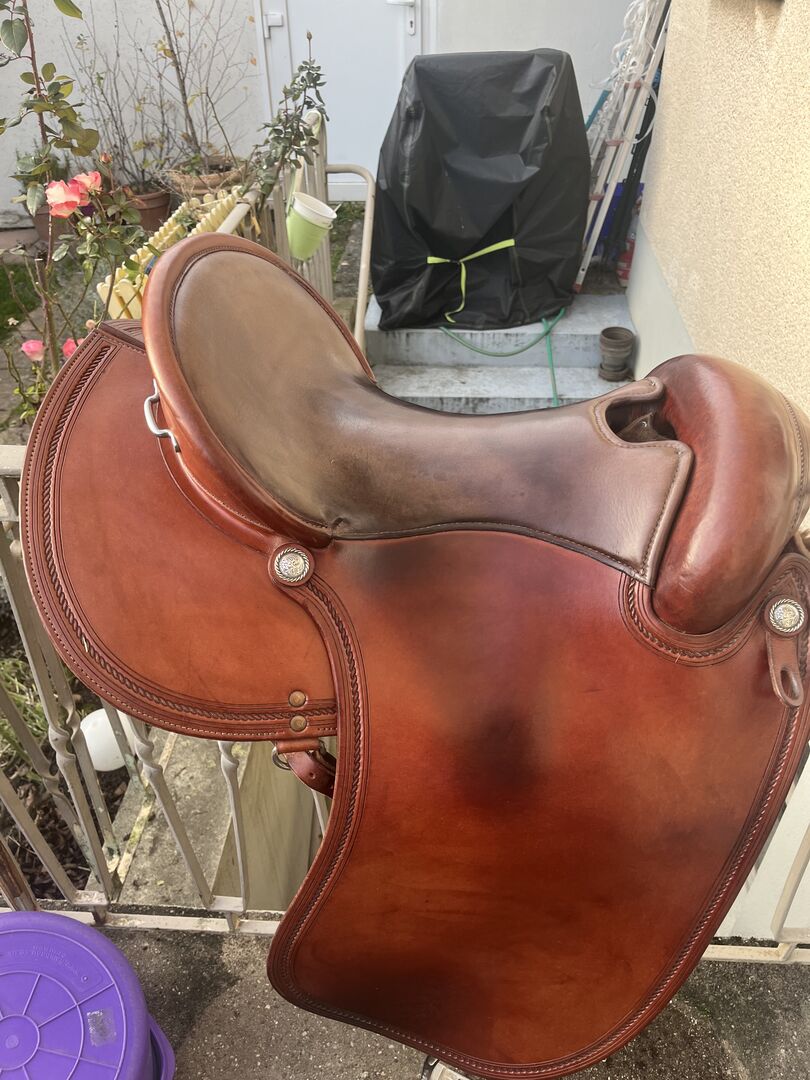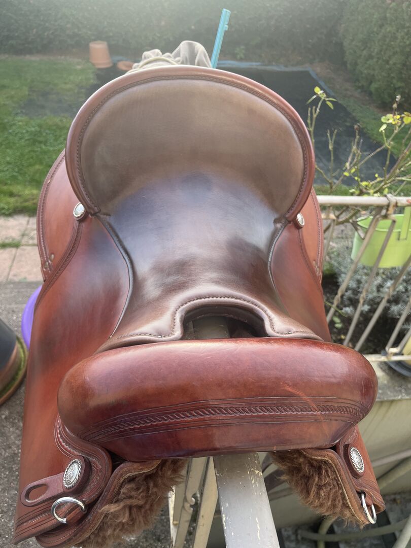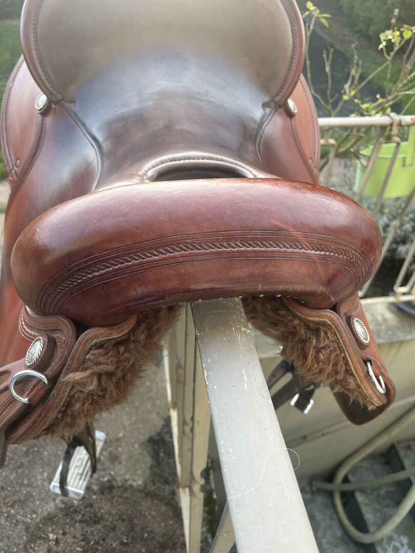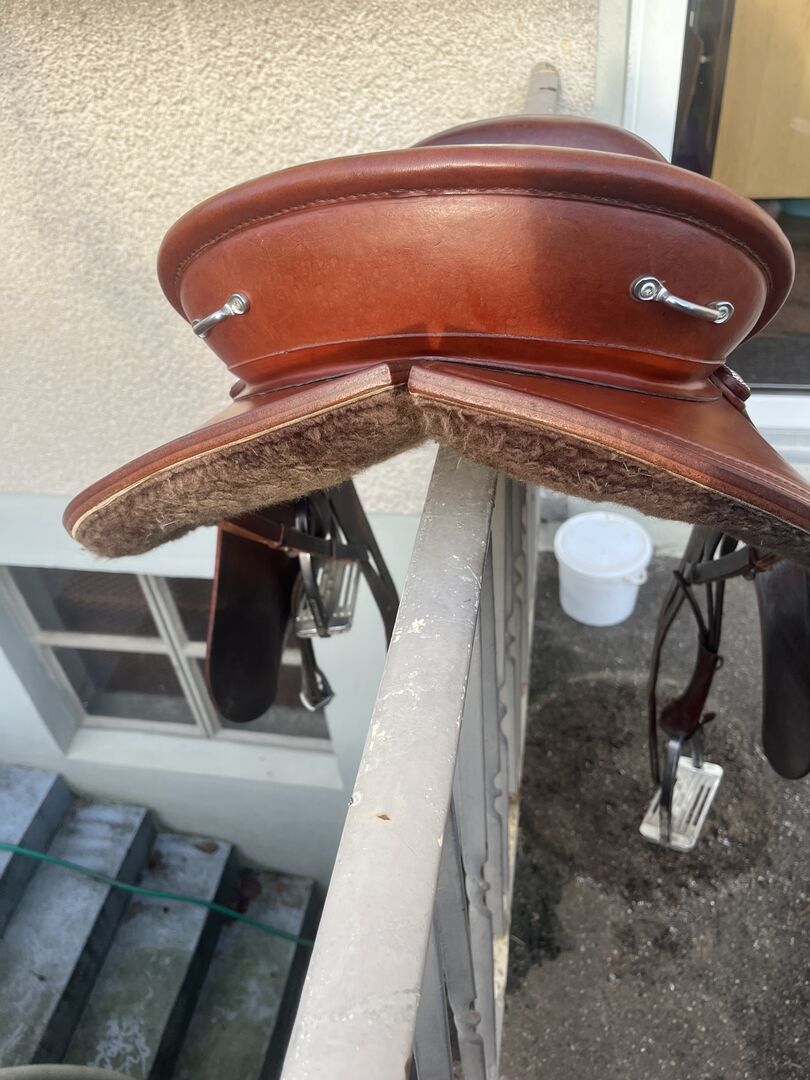 Fitted on a strong spaniel. Not for narrow horses. Saddle can be completely adjusted. Very comfortable and excellent pressure distribution.