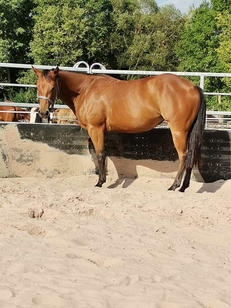 unused, compact Quarter Horse mare - Lovely 4 year old Quarter Horse mare is looking for fostering home. She is a compact, strong mare with a height of 150 cm. Birdy was 1a premium foal. Has a very correct conformation. She is regularly dewormed and vaccinated and presented to the blacksmith. Healthy and 6-panel n/n. Birdy was gently broken in at three years old. Due to time constraints, she has only been worked with from the ground this year. The mare is easy to handle and wants to work and be kept busy. Birdy has a very good reining/cutting pedigree. Dry Cody/Sugar Olena/Grays Starlight/Boots Lynx she still has on paper. A great mare for anyone who wants to continue training their horse themselves. Very interesting for sport, as a leisure partner or also for breeding. EWU young horse program paid in.