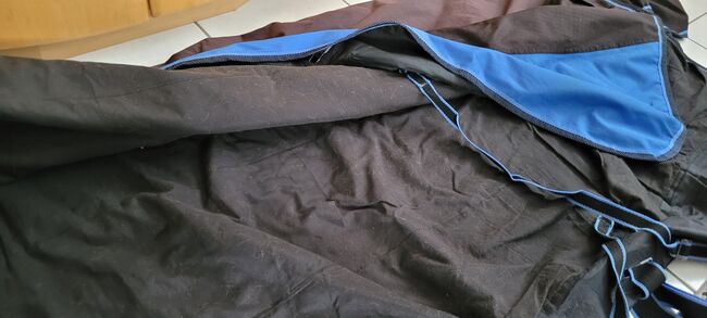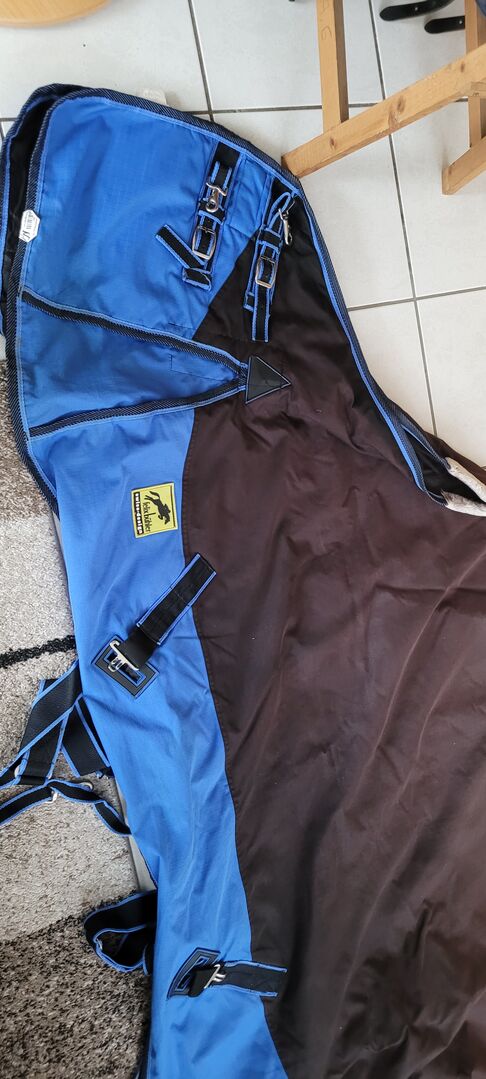 Used padded blanket from Felixbühler size 155 - Used and washed outdoor rug size 155 with cross surcingles and leg cords. It has no tears or holes. It was sewn inside s. PICTURE and not all hair has come out during cleaning (Velcro fasteners). The blanket has 100 g filling no fleece.