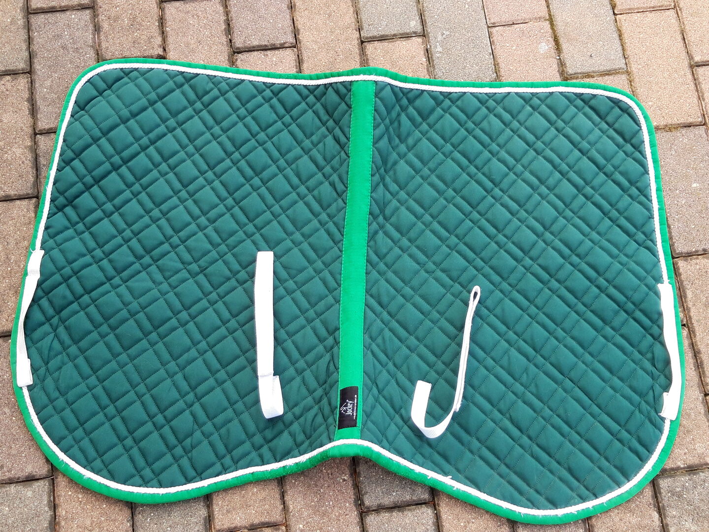 VS Saddle pad Jockey, dark green - VS saddle pad Jockey in dark green with white cord, full, freshly cleaned, back length 58 cm; second-hand