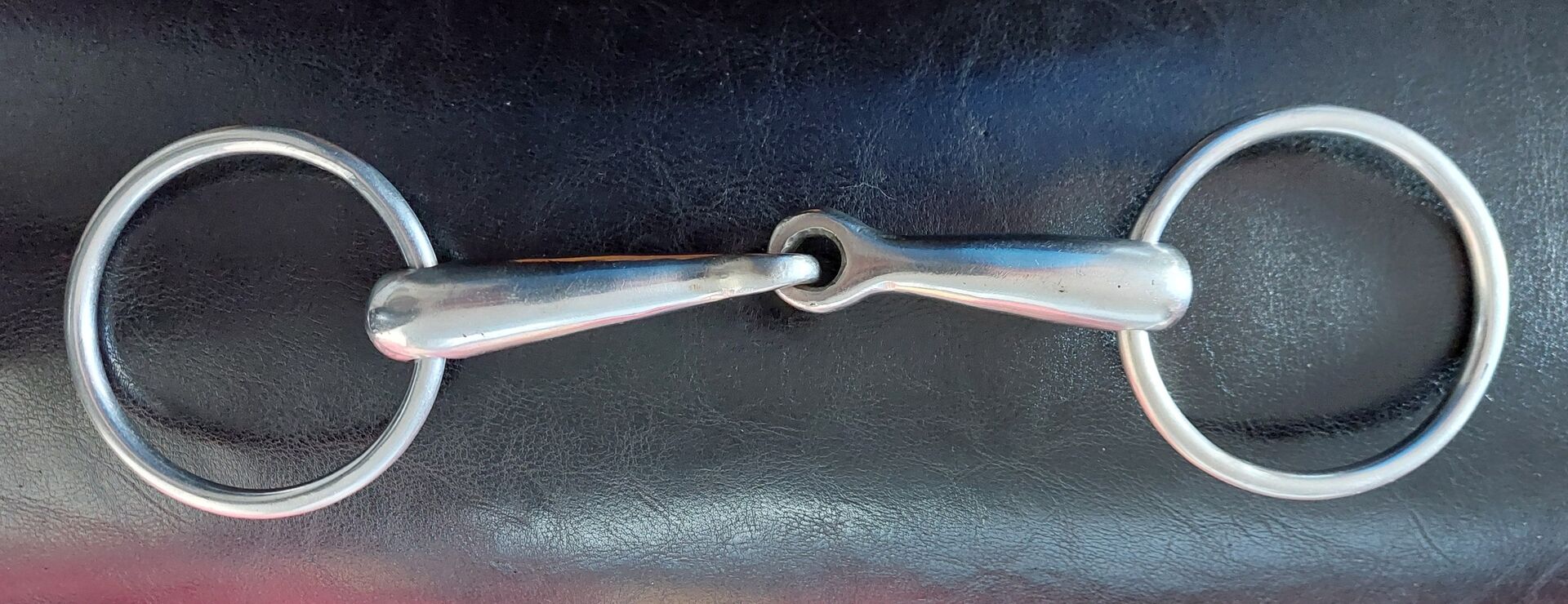Water snaffle, single broken, brand not known - No. 1: Single broken water snaffle, brand unknown, silver colored. Bit width inside approx. 13.5 cm, Ring diameter inside approx. 6.7 cm, outside approx. 8 cm, Thickness of bit shank approx. 1.7 cm at the broad point.