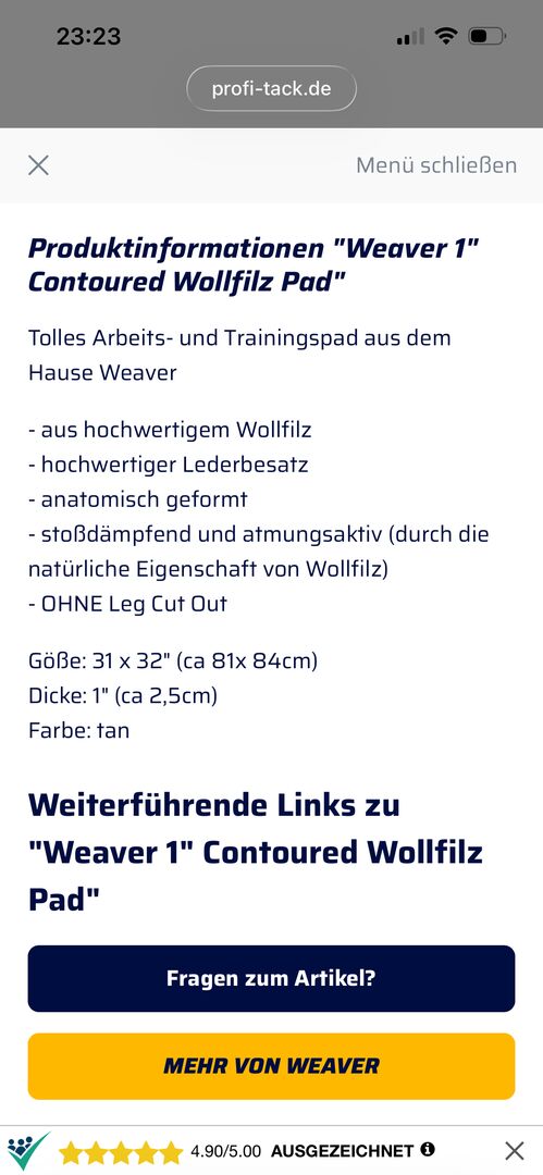 Your opinion on the product 'Weaver Contoured Westernpad Filz 31x32' counts! Help others make their decision – share what you liked (or didn't)!