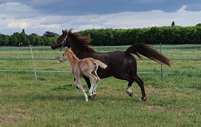 We had her delivered in foal at the end of 2024 for 2025, from a Welsh b stud in Bavaria. She foaled quickly in 2025 without complications and without help and took great care of her daughter, always exemplary and friendly towards people, even at the foal show she was super relaxed in the foreign stable and the foal was premiered.