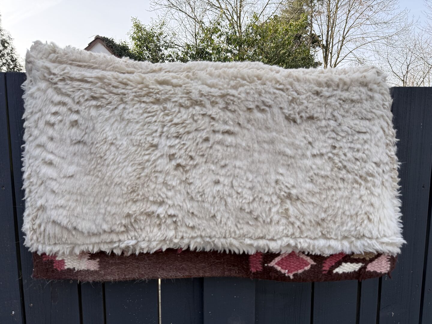 The inside of these pads consists of a high-quality, foamed material that can largely prevent saddle pressure. Individual pressure points can be significantly reduced and the rider's weight distributed more evenly. Of course, the underside is made of a skin-friendly WOOL FLEECE The rug itself is of course hand-woven from wool.