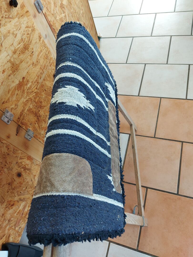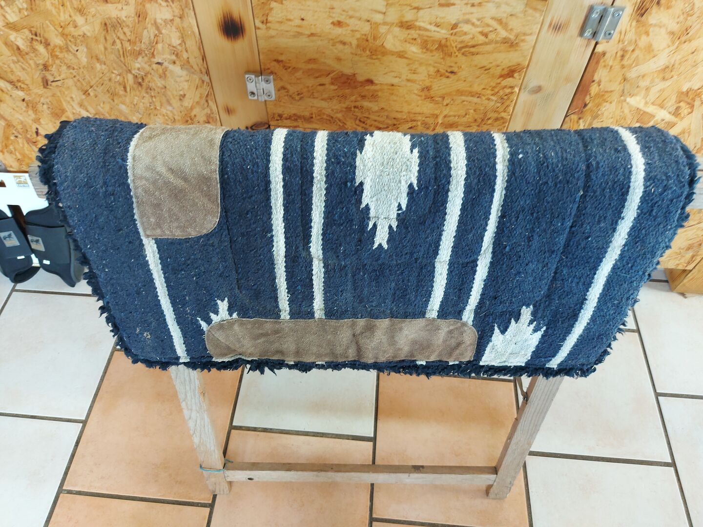 western pad - Sell a blue / white western pad, there is no wear on the leather insert. The pad has the dimensions 64×64× approx 3cm. Except for a few less hairs the pad is clean