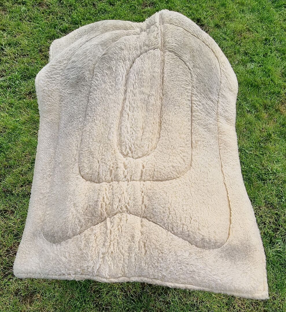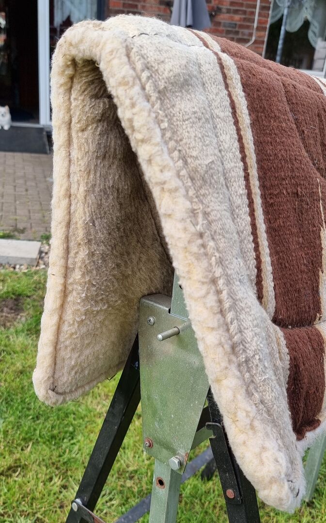 The pad was bought second-hand, so unfortunately I can hardly give any details. The pad was only on the horse a few times without a saddle when a child wanted to ride. The pad was regularly maintained and cleaned.