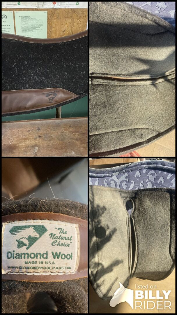 Western pad made of felt round from Diamond Wool - Western pad made of felt 2.5 cm, round. Has been on the horse twice, so is almost as good as new. New price was 209 euros. Length according to the manufacturer 78 cm, I measure more like 74.