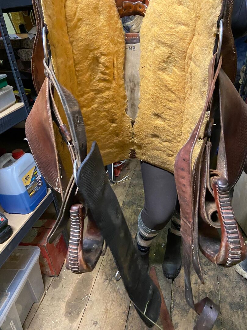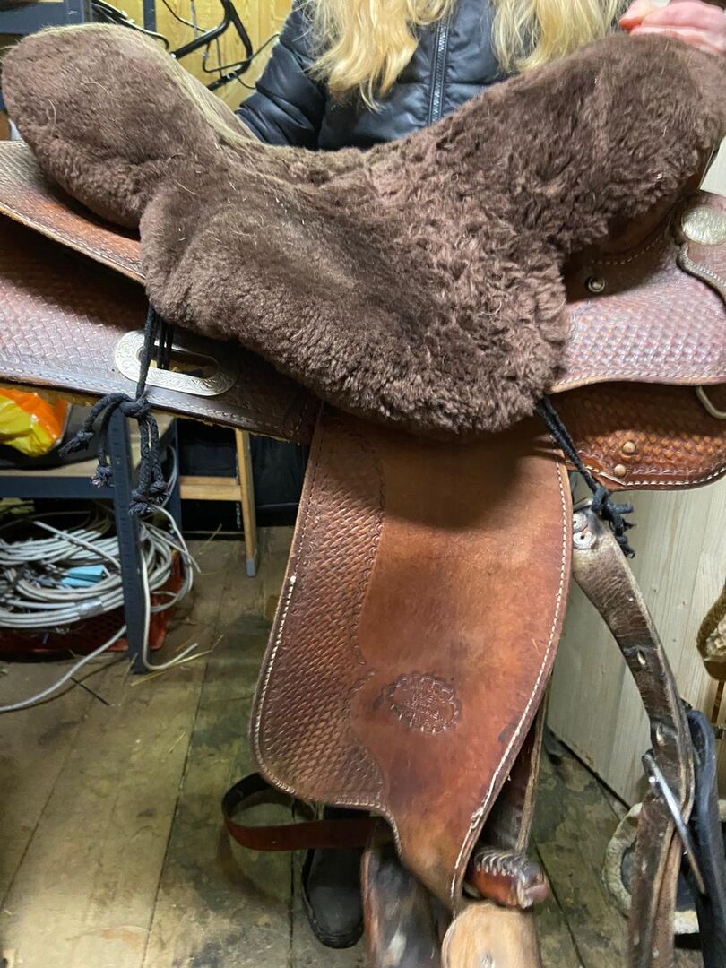 western saddle - Brown western saddle in very good condition with girth, fur for the seat and saddle blanket. Was worn on Haflinger. The matching bridle I would also sell. For further questions please PN.