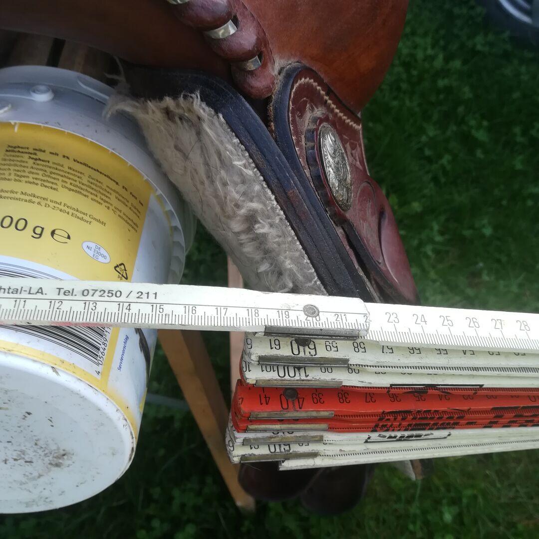 Western Saddle 16" - Well maintained western saddle in size 16 inch (my 44er butt fits well in😃). Being sold as the horse has retired and it doesn't fit the others. Suitable for slightly wider horses with little withers. The saddle is a no-name, but still of good quality. It has very nice silver-colored fittings Fitting possible in the area. However, it is not possible to send it for fitting.
