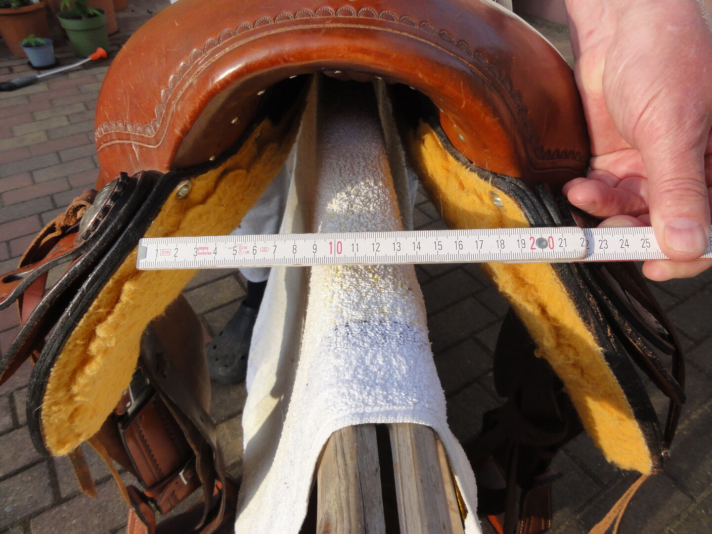western saddle - I am selling a used but very well-maintained western saddle as my mare is enjoying her retirement. It fits rather narrow horses with high withers and a lot of swing. Please refer to the pictures for the measurements.