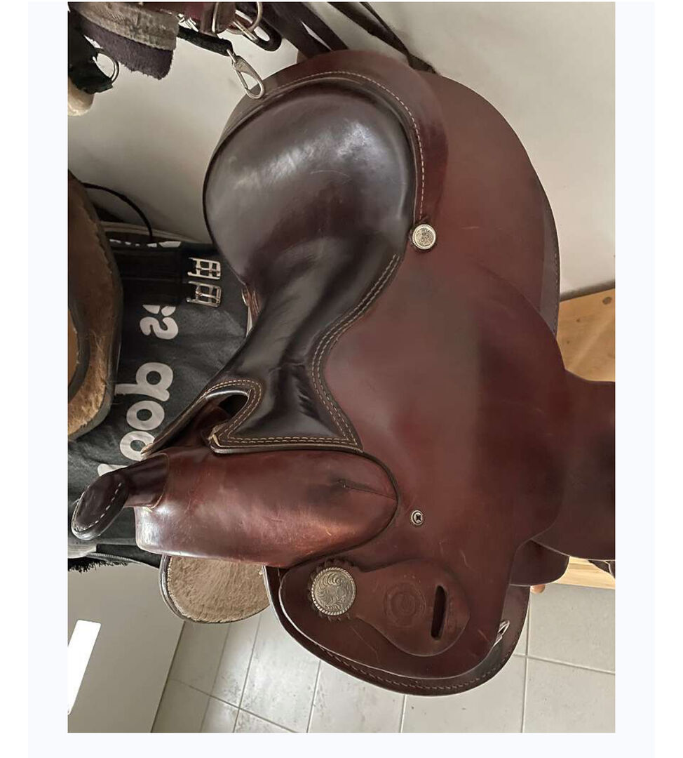 western saddle - For sale used western saddle in good condition. Fitted on a rather wide Haflinger mare who can no longer be ridden due to her age. Very comfortable seat, measurements can be seen in the pictures, if you would like more pictures please send me a message.