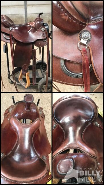 western saddle - The wooden tree is reinforced with fiberglass. The conchos are a set. Fenders are screwed in. I bought it used myself. Can be shipped if costs are covered. Please contact me if you have any questions.