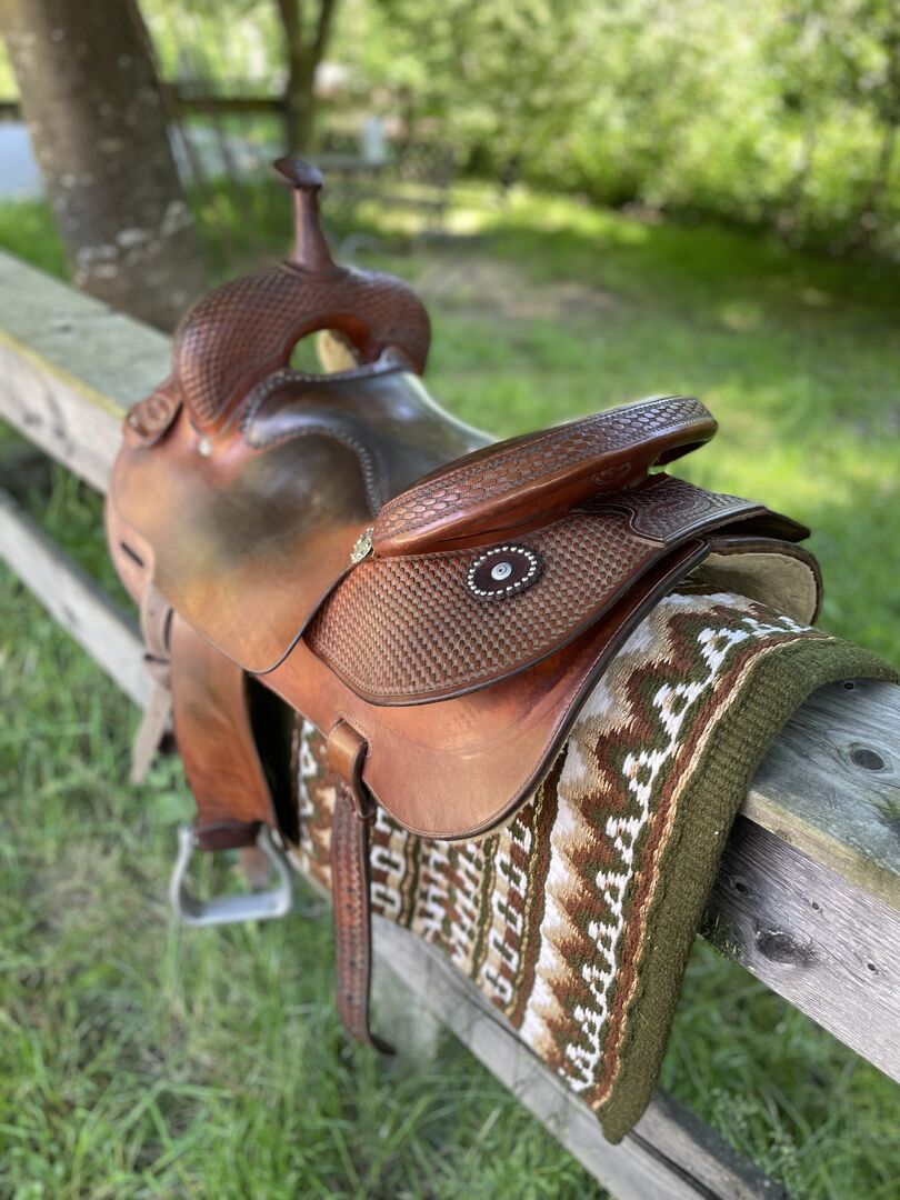 Western saddle FQ / Cutter saddle / Ranch saddle Ryon's - - Dimensions see pictures - Full quarter tree - a little swing - including tie strap, off billet, stirrups and back cinch - 16 inch seat - for short horses