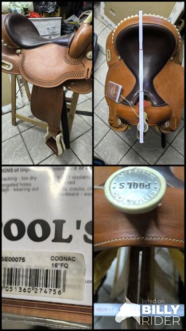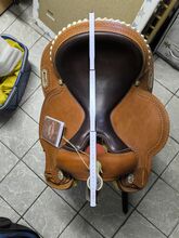 Western saddle Full Quarter - I am offering a new western saddle here. It is a 16" full quarter made of Italian calfskin and a rawhide tree. The saddle is approx. 1 year old and was only put on a horse to try it on. As this is a private sale, the sale is subject to the exclusion of any liability for material defects.