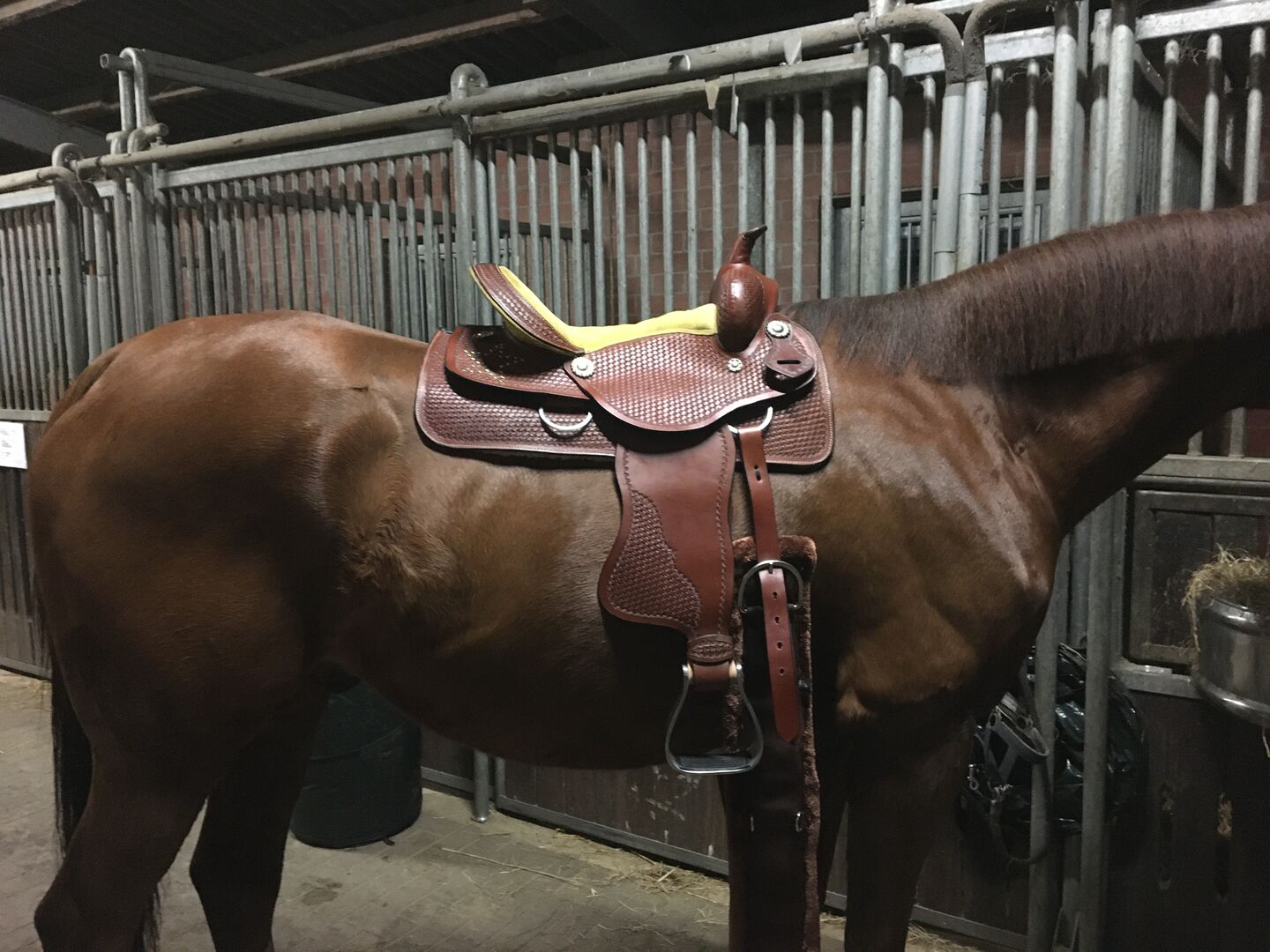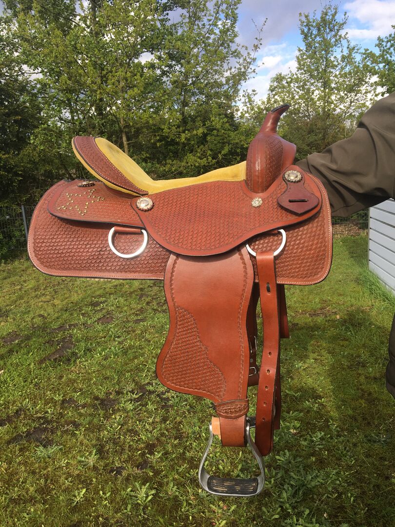 Western Saddle - New - Sell a western saddle. This was only once on the horse and unfortunately does not fit. Dimensions can be taken from the pictures, otherwise please ask. In addition, I give a girth and stirrups (both new).