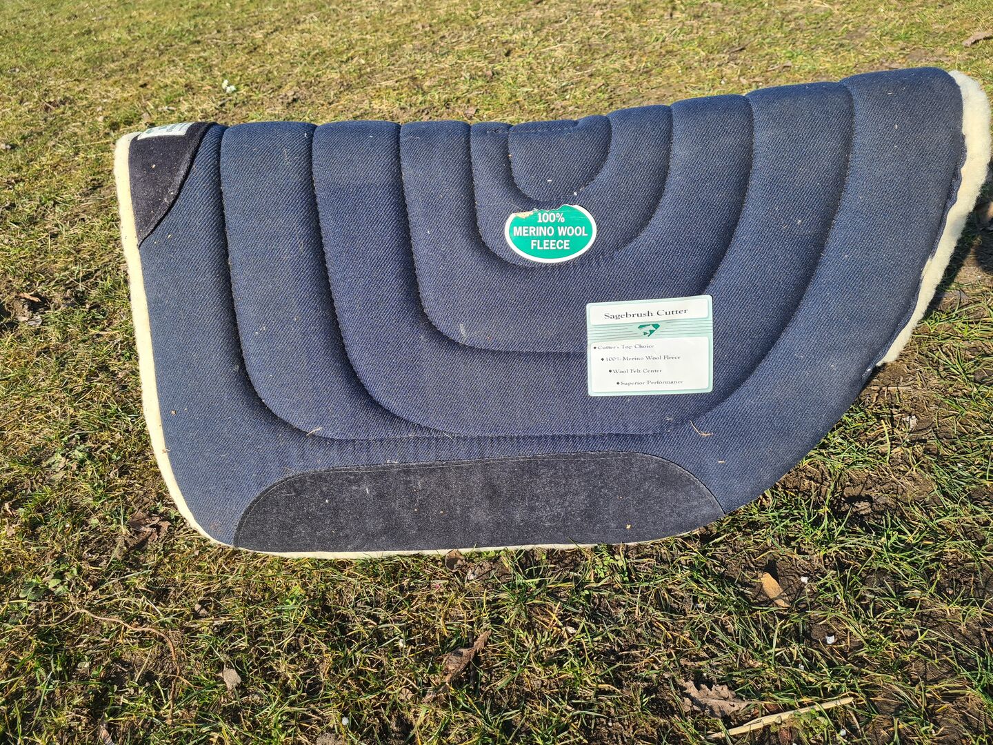 Western saddle pad with merino wool - Very thick pad with 100 % Merino wool - from the USA - small color defect on the inside of the pad see picture - new price was 239 Euro -