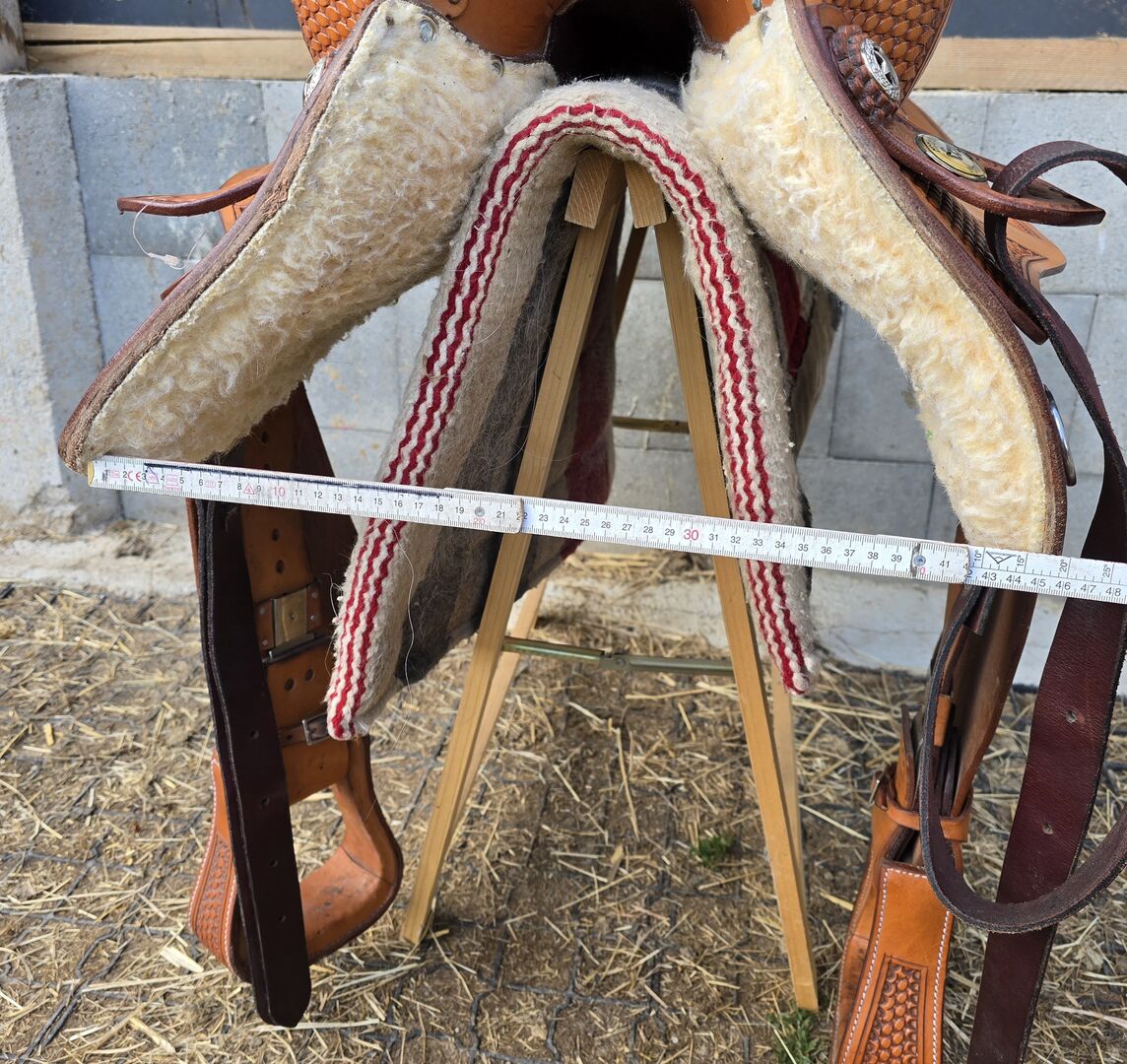 Western Saddle Western Imports Basket Reiner Pad Girth Breastplate - Selling my western saddle of the brand Western Imports Basket Reiner in Cognac seat size 16" with western pad lambskin girth 32" and breastplate. The saddle has hardly been used see pictures.