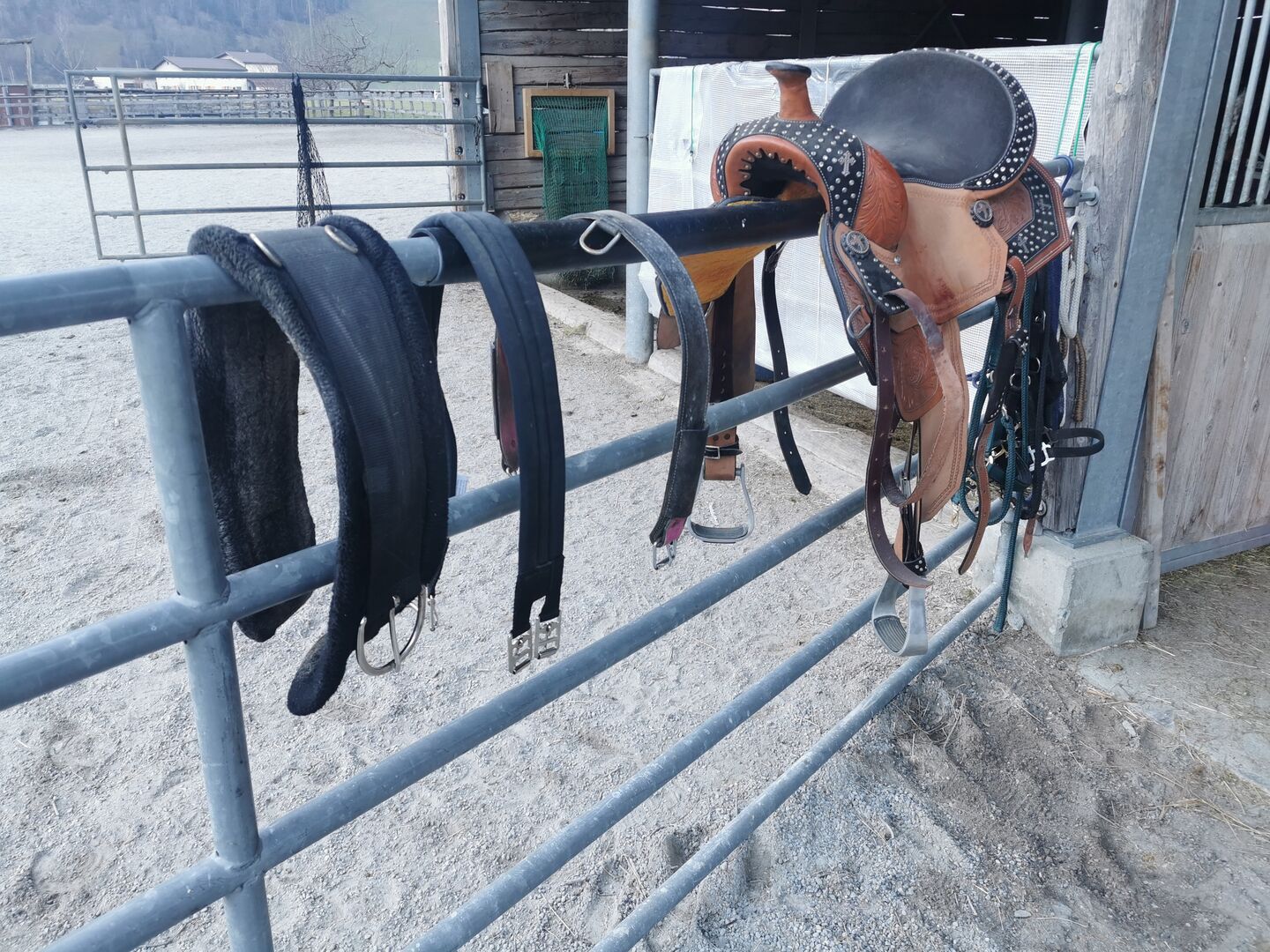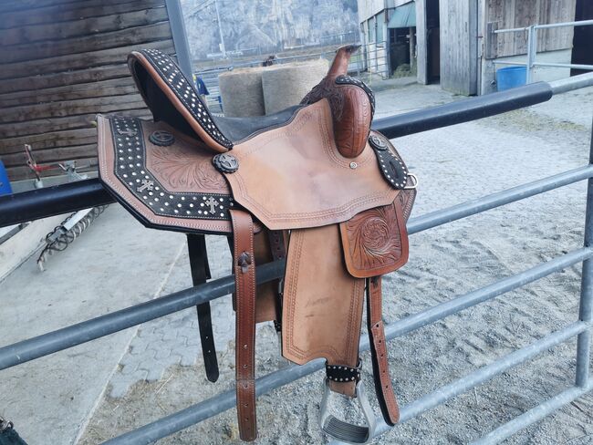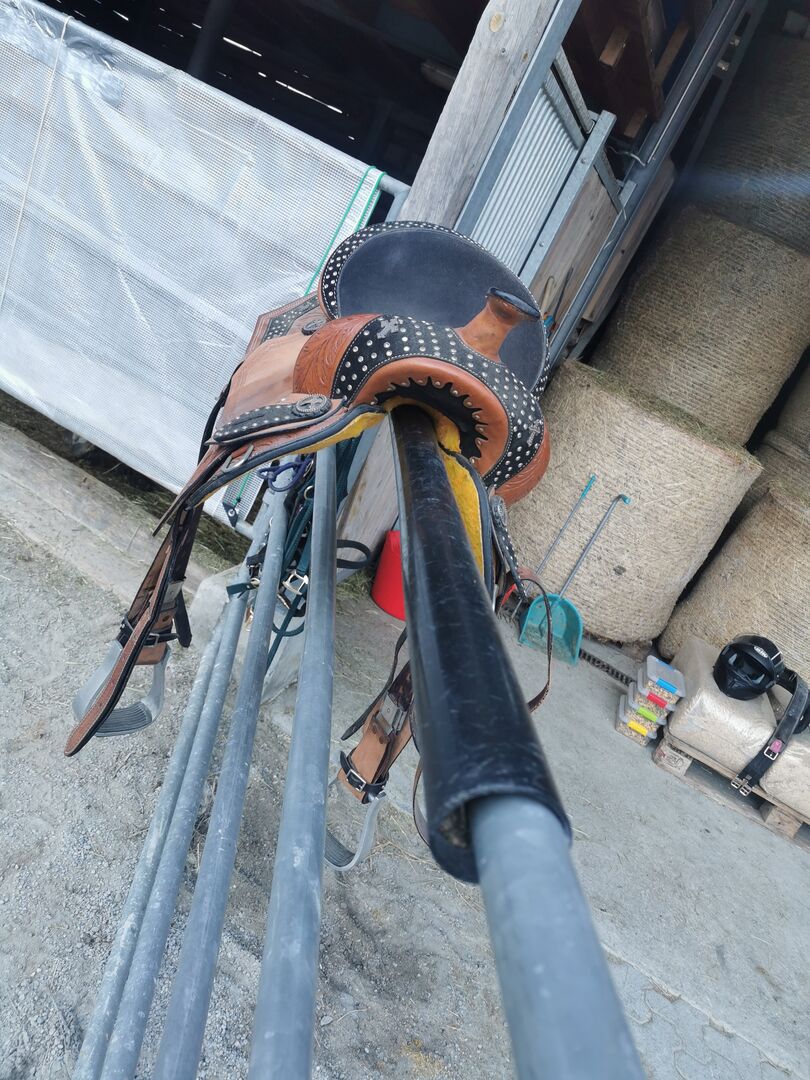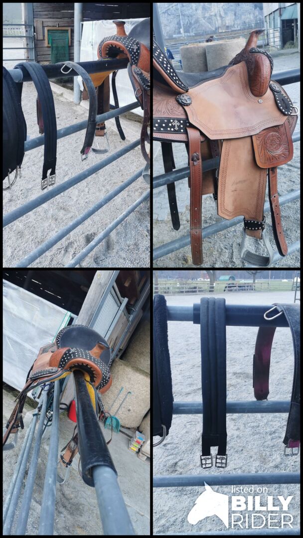 Western saddle with belly girth (3 different, can also be bought separately for 90 CHF each) - Western riding saddle with separate girth (3 different girths for 90chf each)
