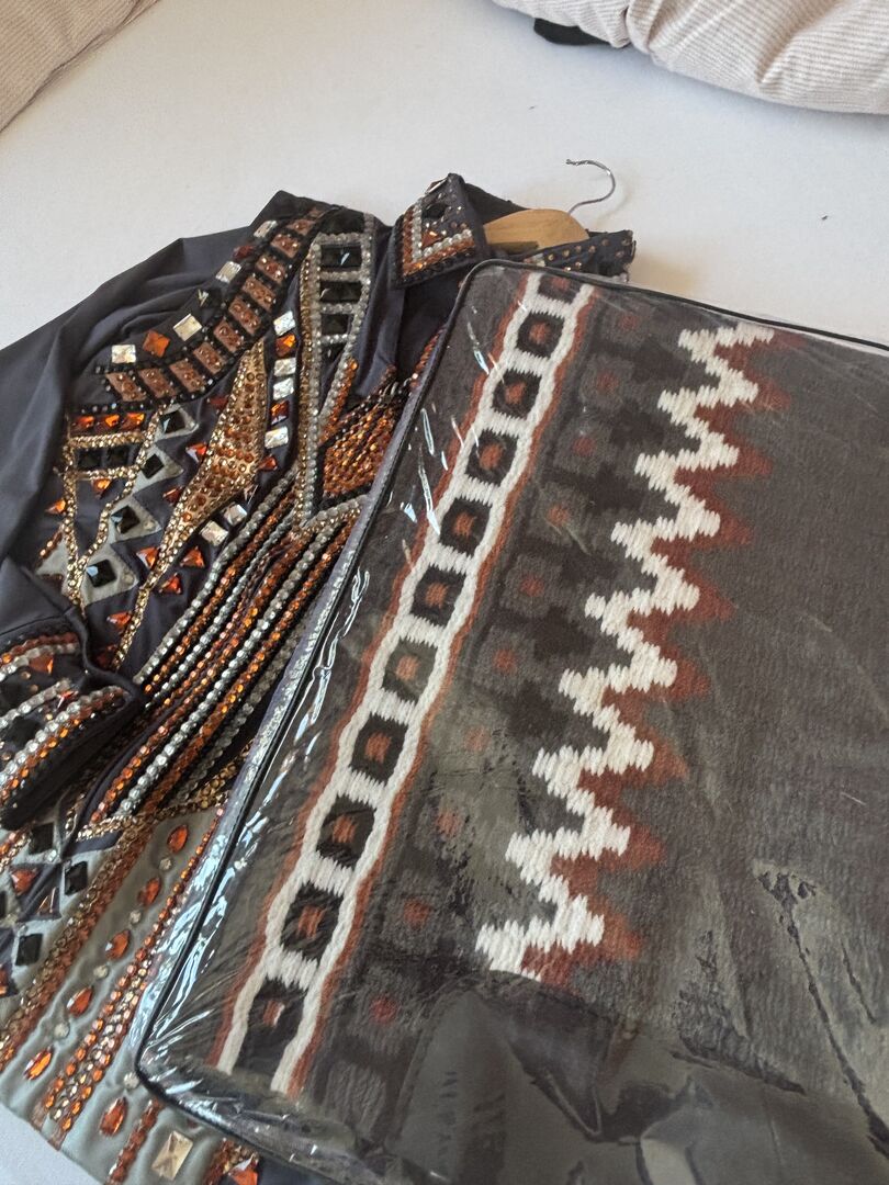 Western show outfit - I am selling a beautiful western show outfit consisting of an elegant show top and matching blanket in size L.