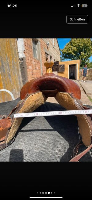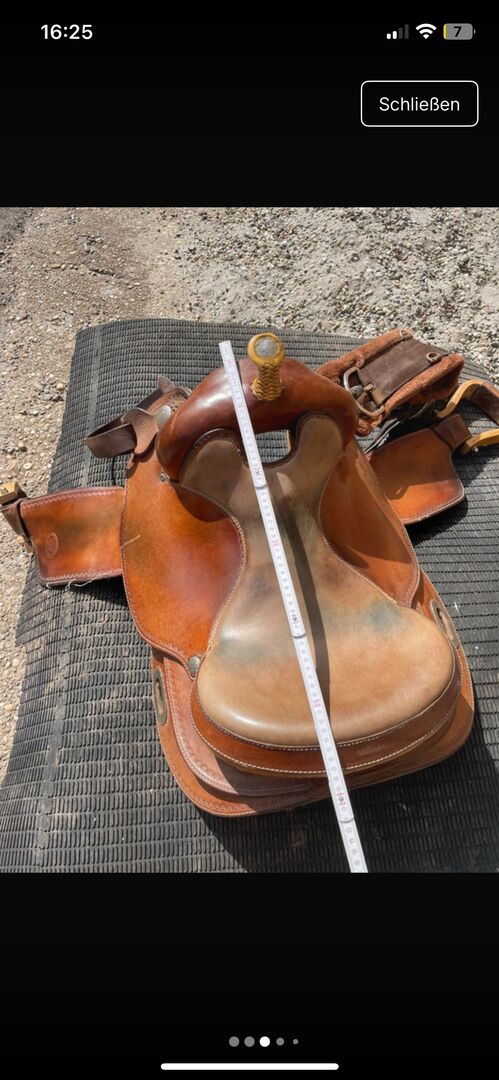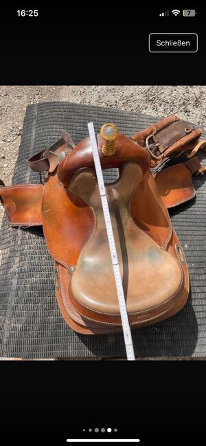 Westwood Western saddle - I am selling my beloved western saddle as it unfortunately no longer fits my Haflinger gelding. The saddle is in good condition. Slight signs of wear are visible, see pictures. It has always been well cared for and still looks very good. The saddle is cut rather wide and I have always been very happy with it, as my horse has shown. It has two-point girthing, see picture.
