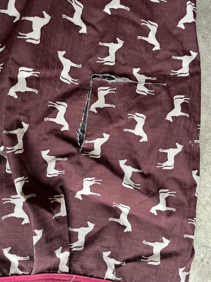 Wheatherbeeta Joules outdoor blankets 1.55 m - striped blanket has 150 gr., blanket with horse is a rain blanket. Both rugs are slightly damaged but can be repaired with a repair kit. 10 Euro for both blankets together