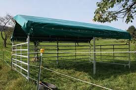 We are selling our pasture tent measuring 6.00m wide and 3.60m deep. The pasture tent is ideal for use on pasture areas or in open stables, for example. It not only provides animals with a place to sleep or shade, but is also ideal for storing hay, straw or similar.