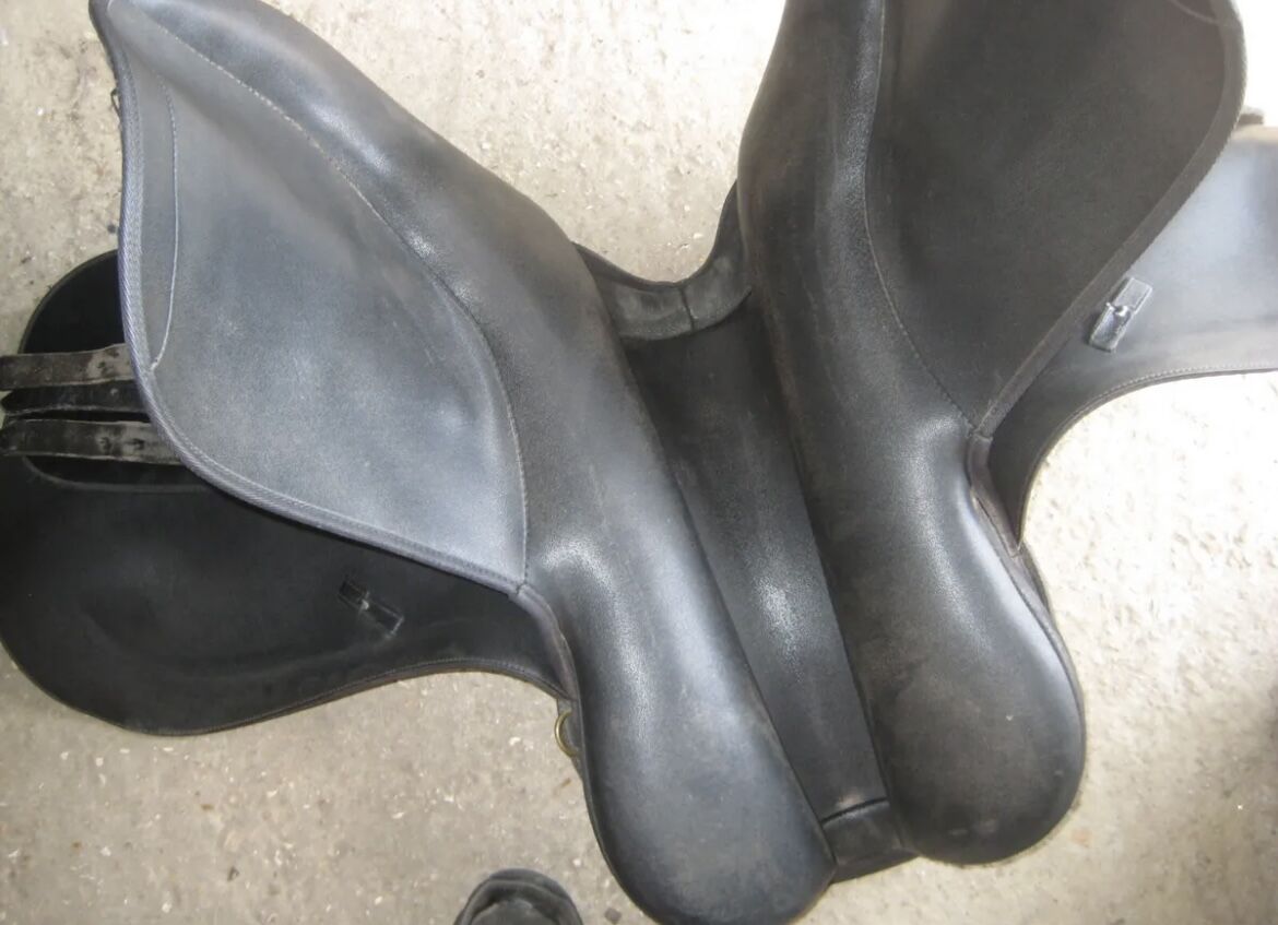 Wintec 2000 GP 17.5” black saddle, General purpose. Blue Gullet fitted but can be changed to suit your pony’s width. The saddle is flocked. There is general wear to parts of the saddle (see pictures) The saddle has been checked annually by a professional saddle fitter and repaired and reflocked where necessary.