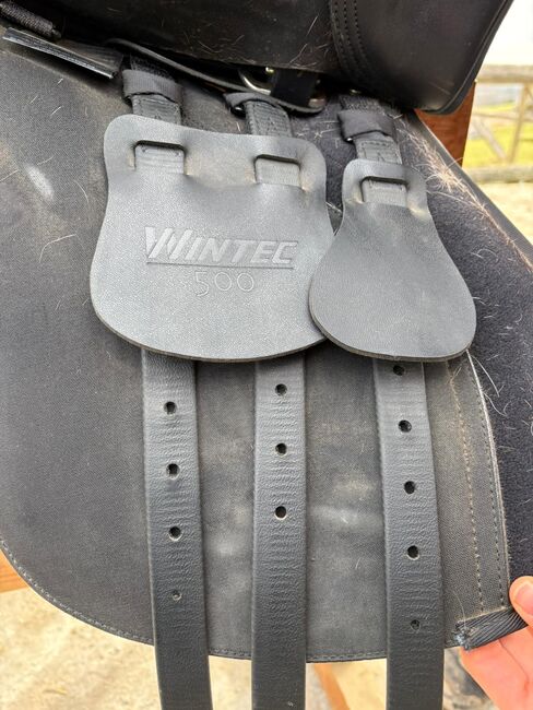 Wintec 500 VS 17 inch - I bought a saddle that is unfortunately too big for my horse and now I am selling it. It has not been used often, has a white gullet plate inside that you can change independently on this saddle. The saddle also has the chair system and you can pad the riser panels up and down yourself.