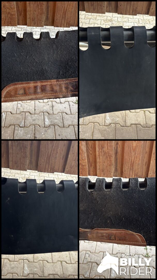 Top side made of shock absorbing felt. Underside made of 100% anti-shock neoprene. Top quality genuine leather trim on the sides. Perfect fit. No slipping of the saddle or pad. FLEX-VENT openings in the spine area prevent heat build-up and improve the fit. Very hygienic. Washable with soap and water.