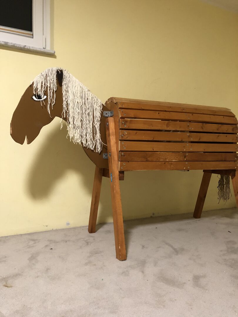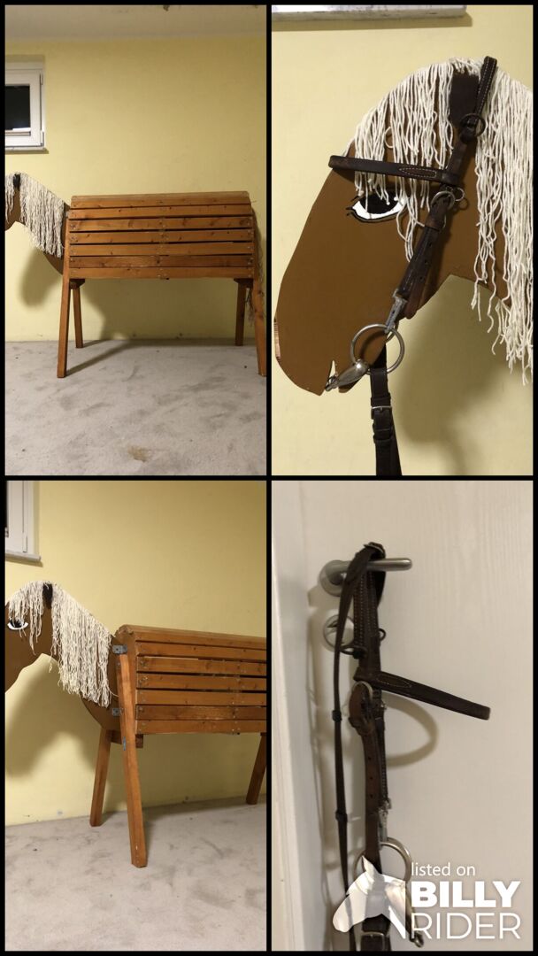 Wooden horse with accessories for sale - Hello Together I sell my wooden horse. The horse is built by ourselves and is very stable. It is in good condition so again repainted sanded and so on. Preferably, the wooden horse is only with accessories to give: Among them would be a real saddle and a real bridle, both are also freshly cleaned and greased and in good condition (only the Nahrt of the saddle is in one place something on). The saddle would be for about 40 € VB to give and the bridle for about 20 € VB to give. Also the Schabraken would be depending on 10 or 15 € Abzugeben. The price for the wooden horse alone starts at 210€ and is negotiable depending on. Alone the material for the construction has cost over 250€. We also have a 2 saddle with a very good condition which would still be useful for real riding, if interested please ask privately for photos. Private sale, no gun performance, no return. Only collection. Looking forward to inquiries