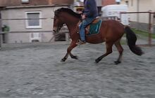 He is very well-behaved and uncomplicated to handle - he is easy to lead, groom and saddle. He is also attentive when being lunged and likes to join in. He has already been ridden in front of the carriage several times and ridden twice (we will continue to work with him). The rider was already able to mount him alone on the 2nd occasion...so much for his willingness to learn and trust. He is fearless, willing to learn and has a great character - he learns quickly and always wants to do everything right.